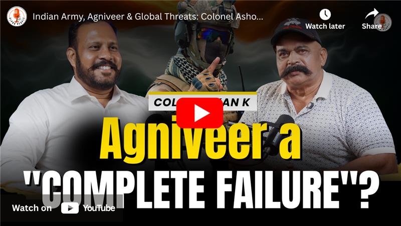 A major focus of the conversation is the Agniveer scheme, a subject that Col. Ashokan approaches with both appreciation and caution. He acknowledges that the program was designed to instill discipline among youth and to reduce the financial burden of defence salaries and pensions, which consumed a large portion of the budget. Yet, he voices strong concerns about its execution. With only 25 percent of Agniveers retained and the remaining 75 percent released after four years, India faces the challenge of tens of thousands of trained young men and women reentering society annually without assured jobs. He warns that this uncertainty has already eroded the traditional respect once enjoyed by soldiers in society, citing how marriage prospects for Agniveers have declined compared to earlier generations when army service was a source of immense pride. More importantly, he argues that modern warfare is highly technical, requiring years of training to master complex systems like missiles, drones, AI-driven defence tools, and stealth aircraft. A four-year tenure, he believes, is inadequate for developing such expertise, and releasing trained soldiers so quickly is a waste of national resources. In his words, this is not the time for experiments with the armed forces, especially when India faces technologically advanced adversaries such as China. His suggestions are clear: retain at least half the recruits, extend service to ten years, and guarantee absorption into paramilitary or police forces after their service ends.